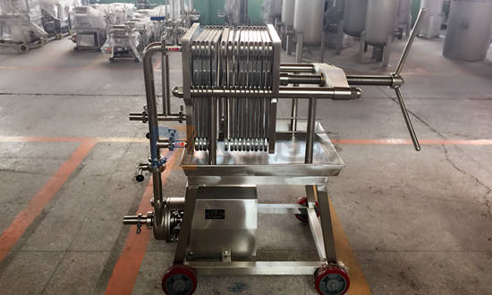 不銹鋼板框多層過濾器,是一種精密液體過濾機,整體鏡面拋光,采用濾布、濾膜過濾,增加密封條,不銹鋼泵。